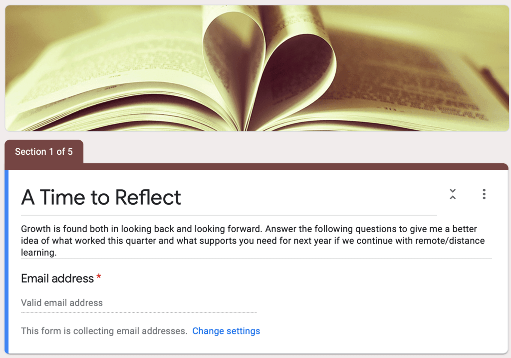 If you’re interested, here is the link to the Google Form: A Time to Reflect.