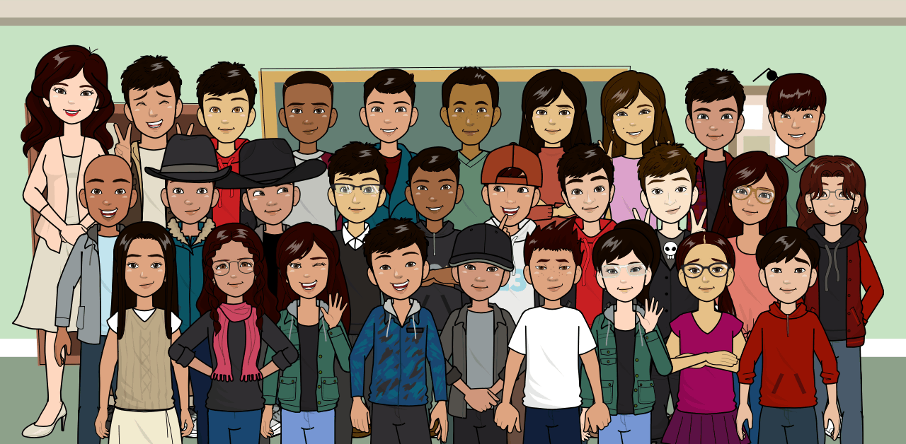 We begin developing our family identity through the creation of avatars that can be put together in a class photo. This is where Pixton is amazing. Students can choose different options to create an avatar that is personalized to how they are in reality or even their alter-ego. Then all I have to do is go through Pixton to create a class photo of all those avatars.